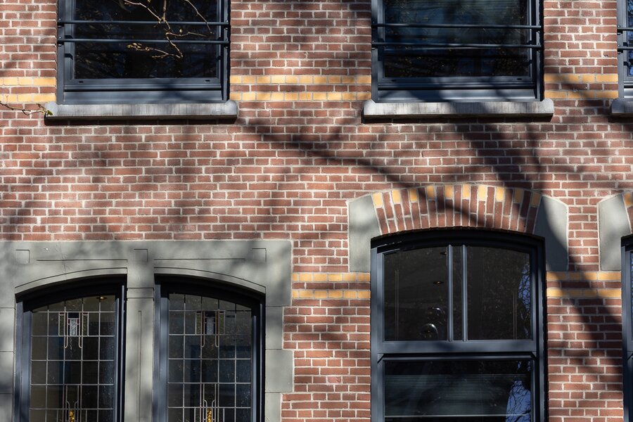Dit imposante herenhuis valt direct op in de straat: een authentieke gevel met kozijnen voorzien van antraciet grijs schilderwerk. De gevel is gereinigd en geïmpregneerd.