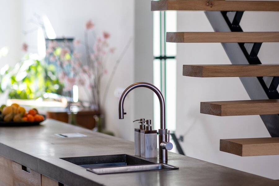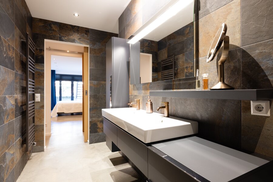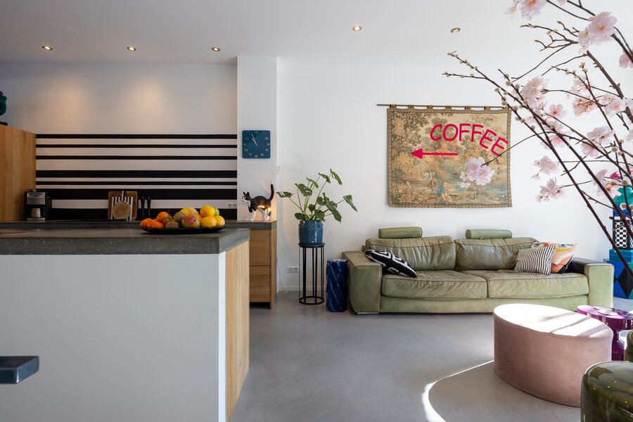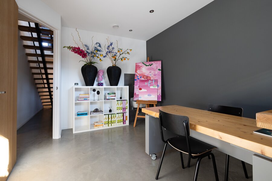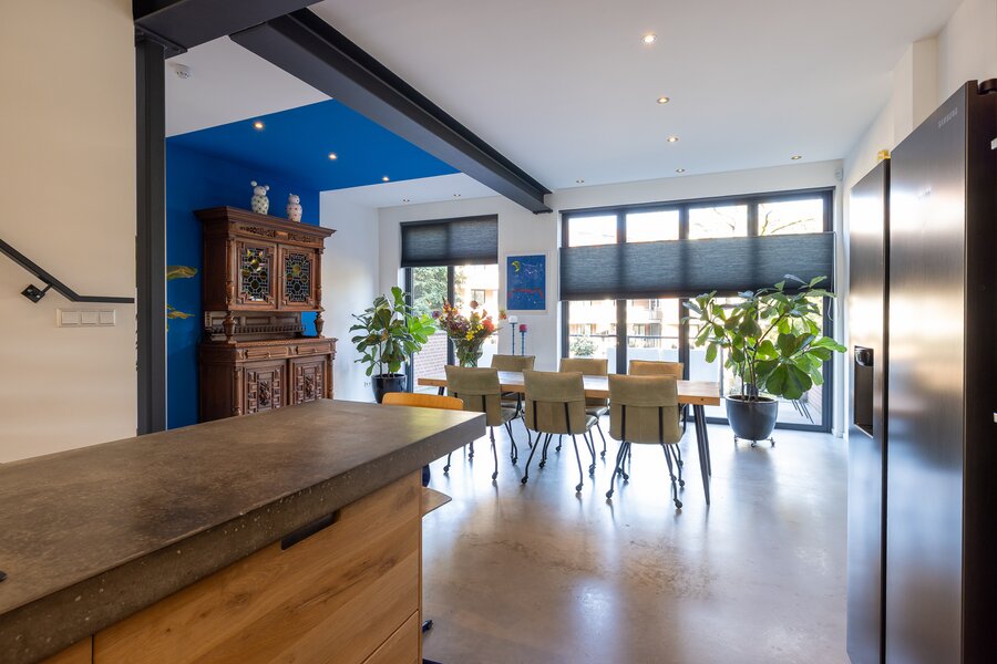 - Gehele woning is voorzien van een stoere betonnen vloer met vloerverwarming per ruimte te regelen