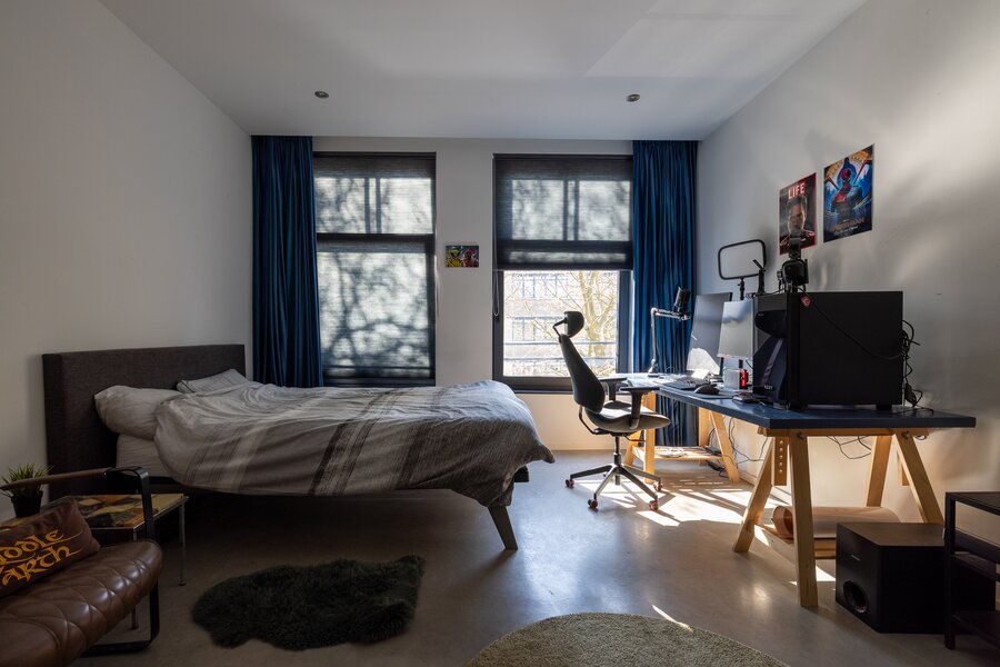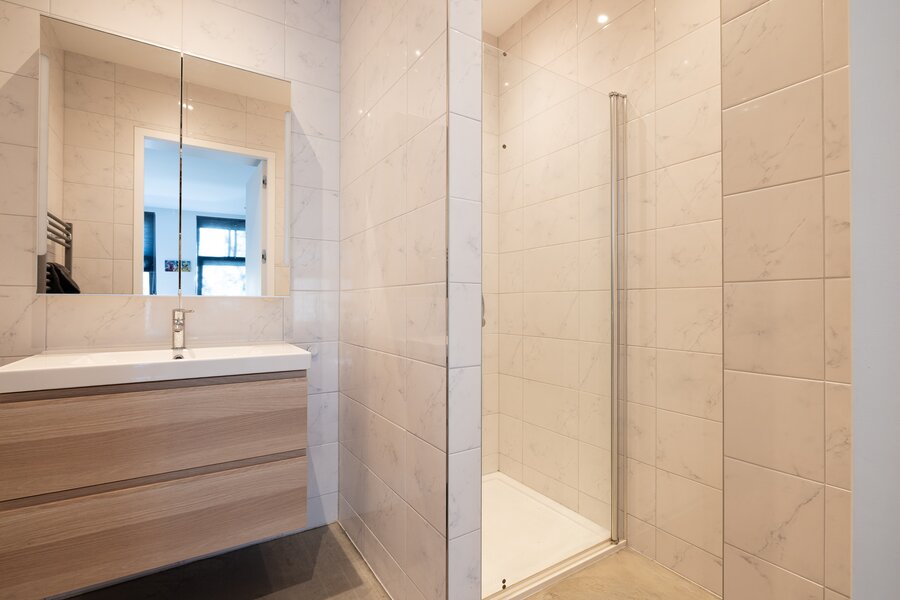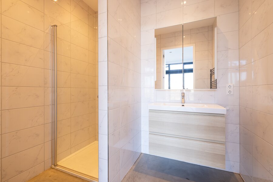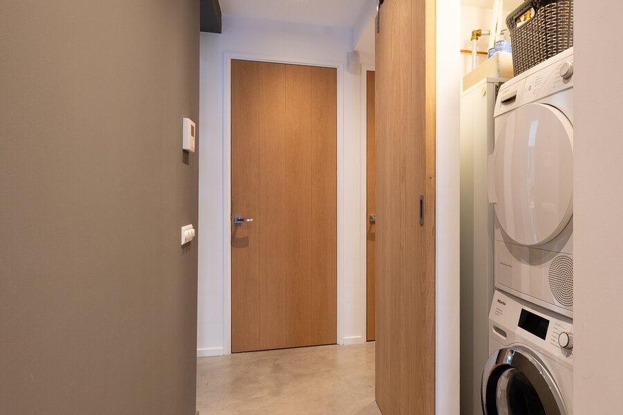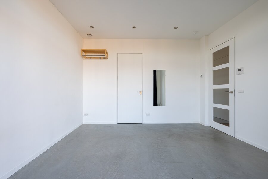 Overloop, ruime berging met opstelling voor de wasmachine en droger. Hier is ook de warmtepomp en de WTW installatie voor de bovenwoning. Daarnaast heeft de bovenwoning een eigen meterkast. Op deze etage zijn 2 zelfstandige studio's gevestigd. De studio's kunnen voor diverse doeleinden gebruikt worden denk aan verhuur, woonruimte voor inwonend familielid of als extra werkruimte. De studio's zijn voorzien van een gecombineerde woon-slaapkamer, keuken, separaat toilet met fonteintje en badkamer voorzien van inloopdouche en wastafel met meubel. De studio aan de achterzijde heeft de beschikking over een balkon.