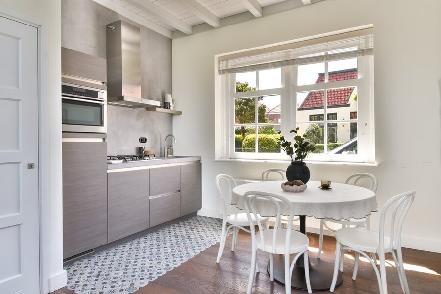 Vanuit de eetkamer loopt u door naar de moderne keuken, waar comfort en functionaliteit samenkomen. Vanuit de keuken heeft u toegang tot de tuin. Aan de andere zijde leidt een doorgang naar de woonkamer, waardoor de leefruimtes vloeiend in elkaar overlopen. Ideaal voor wie houdt van openheid met behoud van knusse hoekjes.