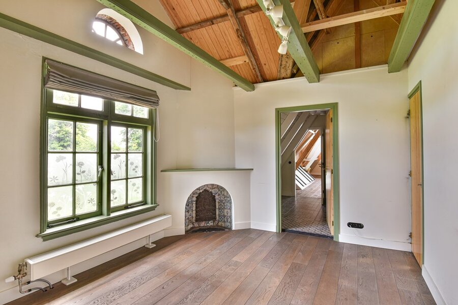 Deze kamer voelt intiem en licht tegelijk en is ideaal als logeerkamer, kinderkamer of rustige werkplek. Het zicht op de tuin en de klassieke indeling maken dit een bijzonder prettig vertrek binnen deze unieke woning.