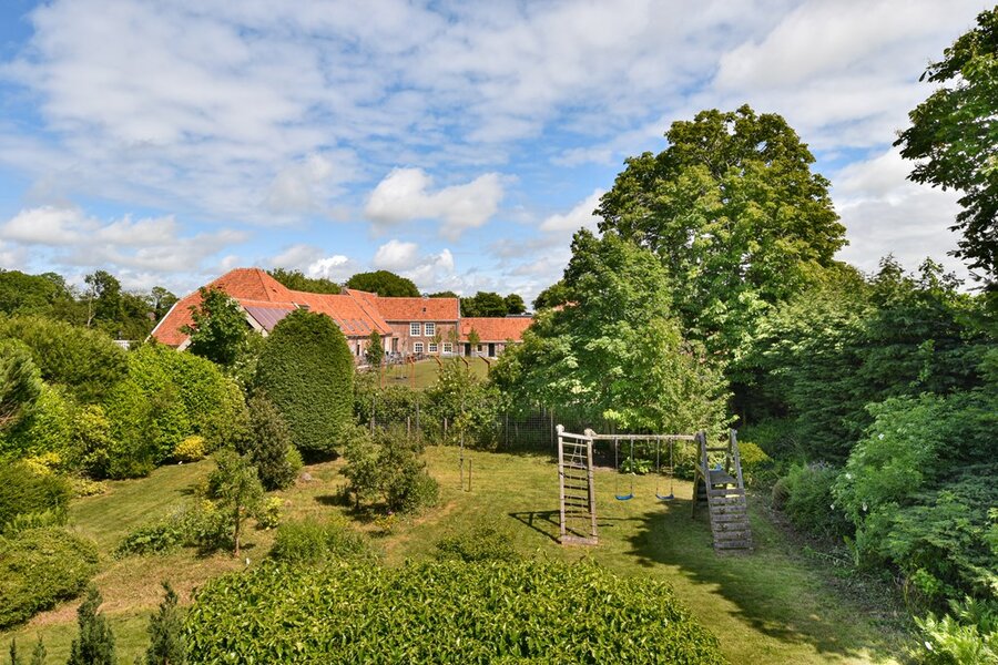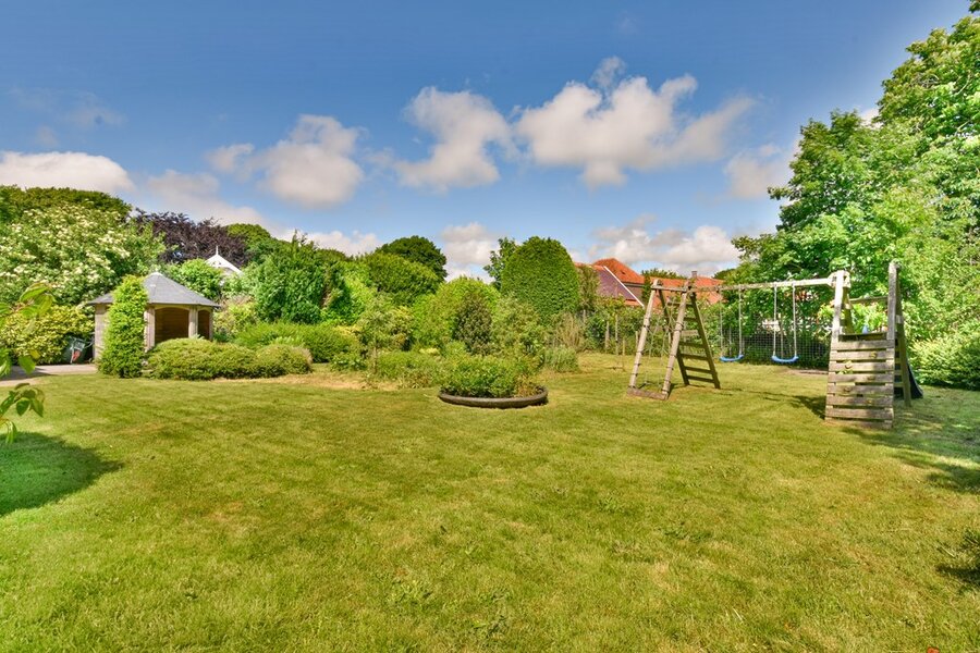 De tuin is met zorg aangelegd en biedt ruimte voor meerdere zitplekken, zowel in de zon als in de schaduw. Hier kunt u in alle rust genieten van het buitenleven, met uitzicht op het groen en de karakteristieke lijnen van het huis.