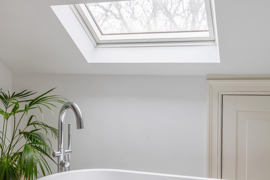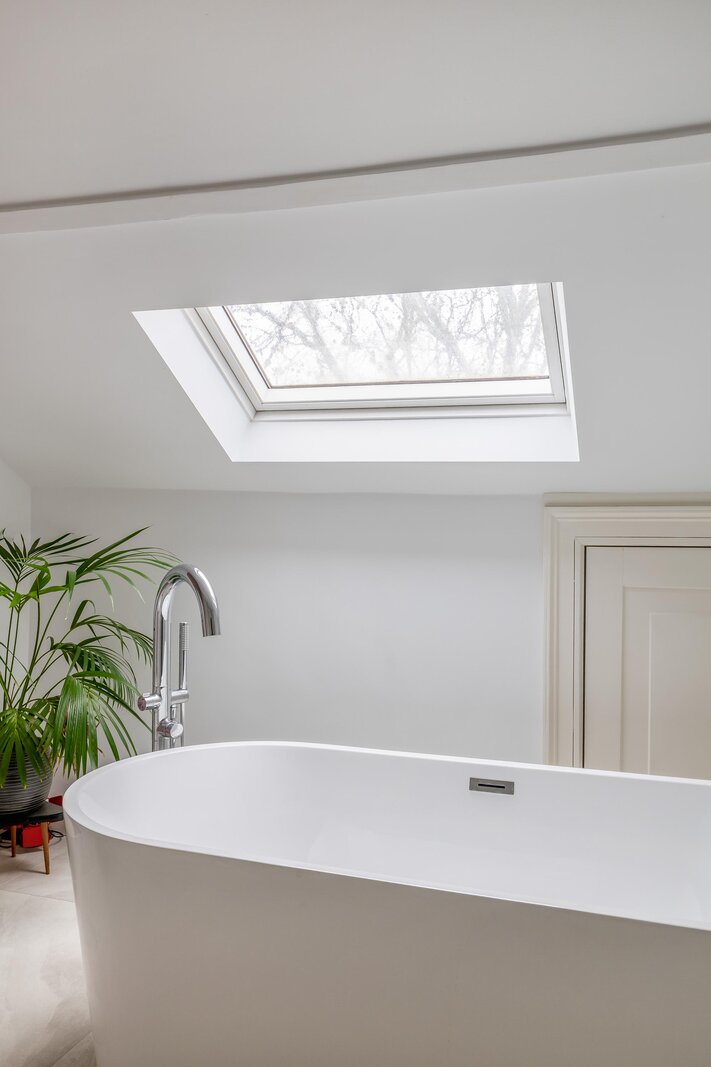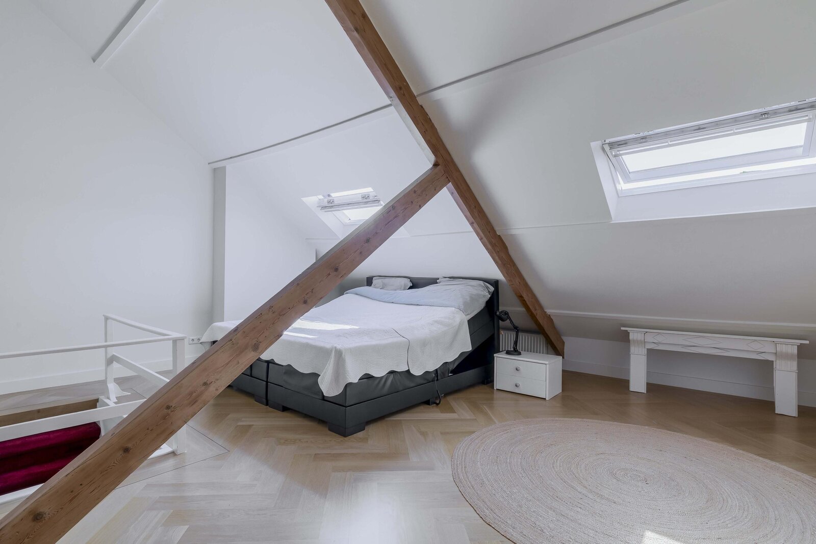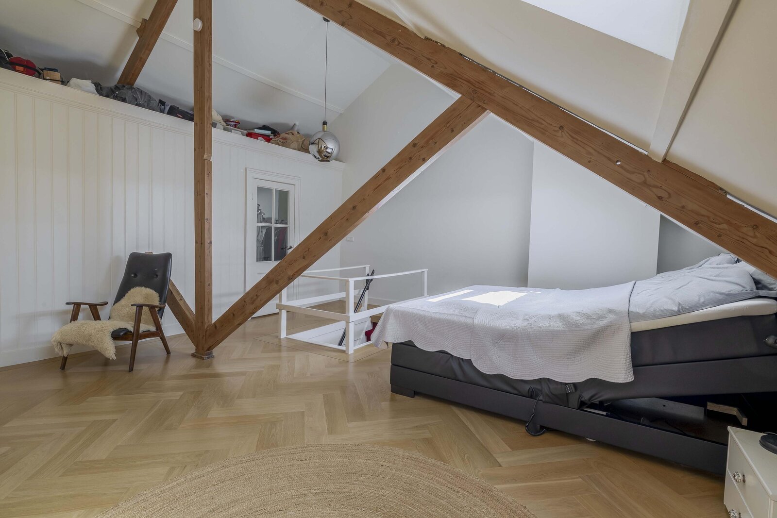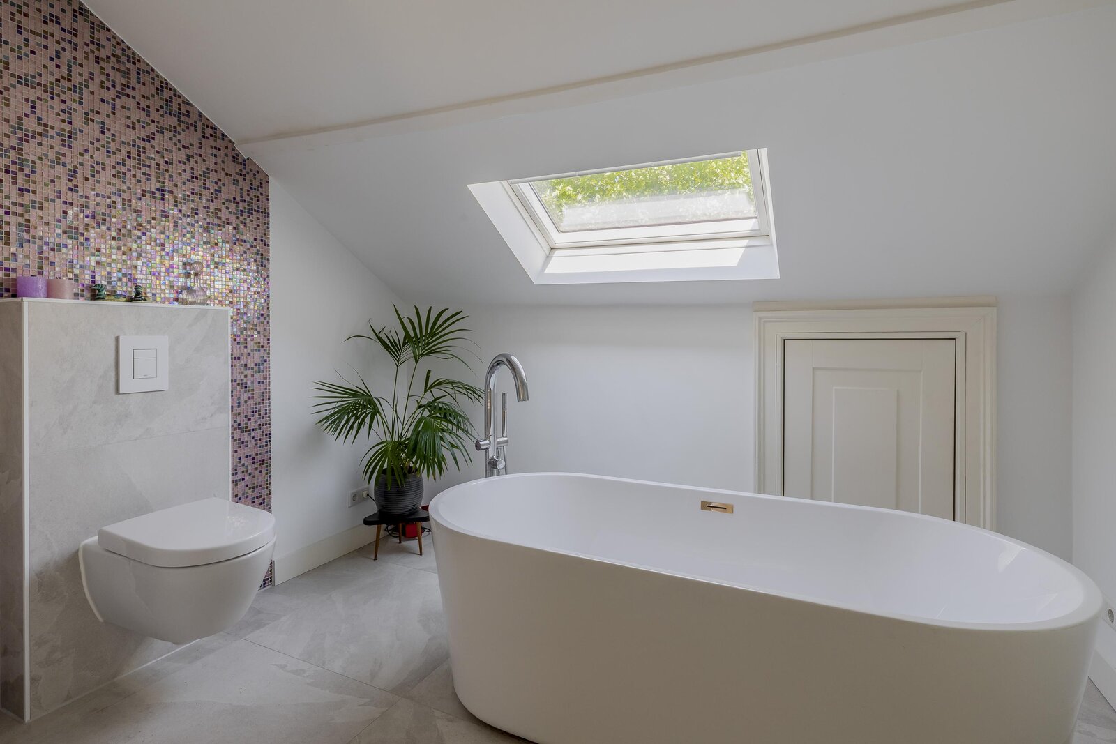 Een waar privé-domein: de gehele kapverdieping is ingericht als mastersuite. Loftachtig, met zichtbare kapconstructie, een royale slaapkamer, walk-in-closet en luxe badkamer met vrijstaand ligbad, inloopdouche en dubbele wastafel. Daarnaast nog een extra kamer – perfect als hobbyruimte, gym of extra kleedkamer.