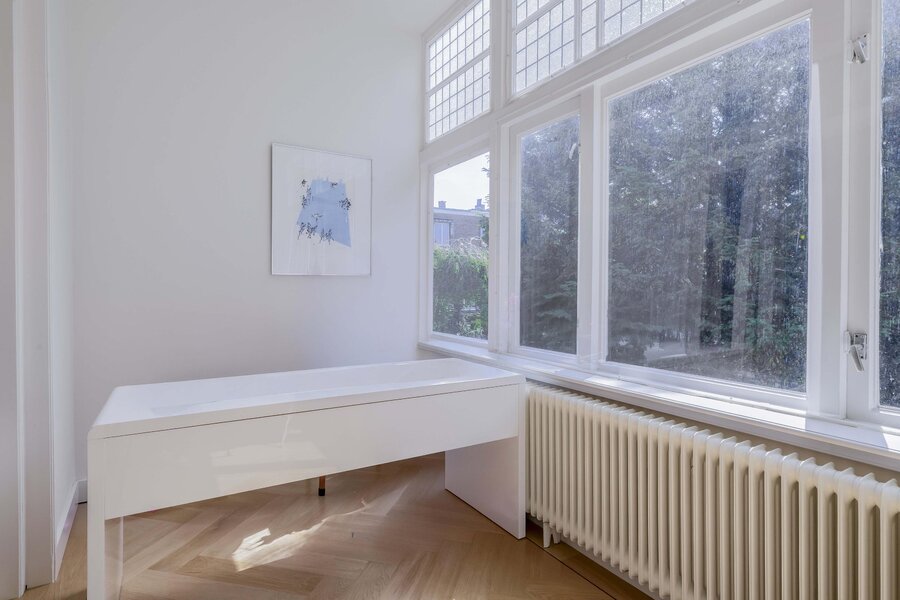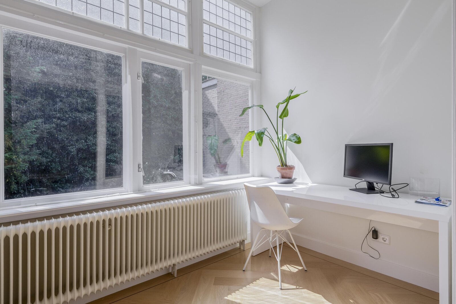 Deze verdieping ademt rust en ruimte. Aan de voorzijde een royale living met twee zitgedeelten, en een balkon dat uitzicht biedt over de volwassen bomen van de Maliebaan. Tevens een tweede keuken (2020) met moderne apparatuur zoals een kookkraan en inductiekookplaat. Aan de achterzijde een tweede serre, perfect als lounge of bibliotheek. Ook vind je hier een afgesloten werkkamer – ideaal voor thuiswerken of praktijkruimte. Door de indeling, losse keuken en het comfort is deze verdieping ook zeer geschikt als zelfstandige woonlaag.