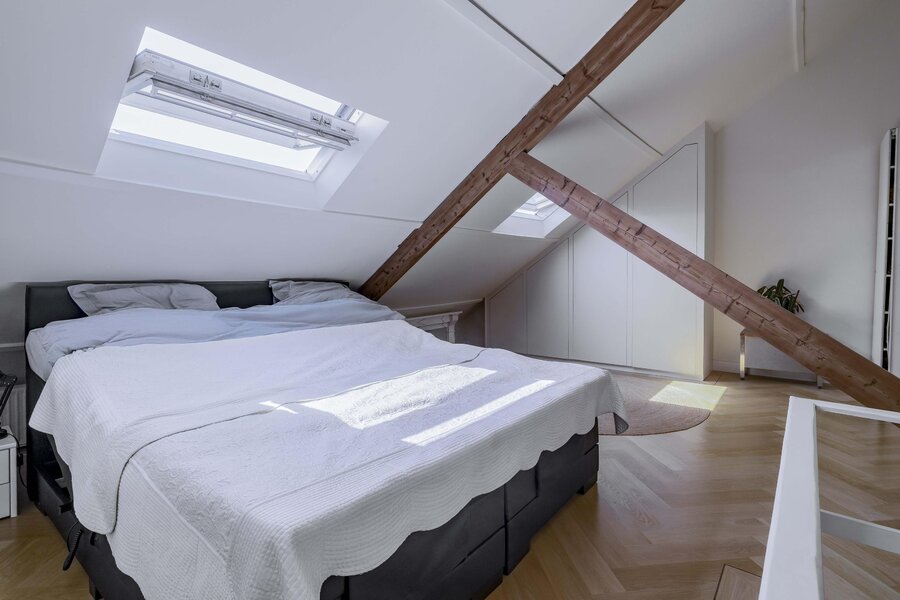 Drie ruime slaapkamers – elk met een eigen karakter – bieden volop plek voor gezinsleden of logees. De badkamer is voorzien van een ligbad, aparte douche, dubbele wastafel en toilet. Via de overloop toegang tot een sfeervol dakterras: een oase midden in de stad.