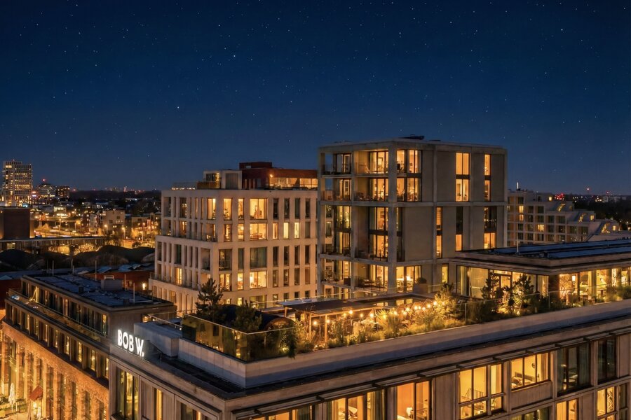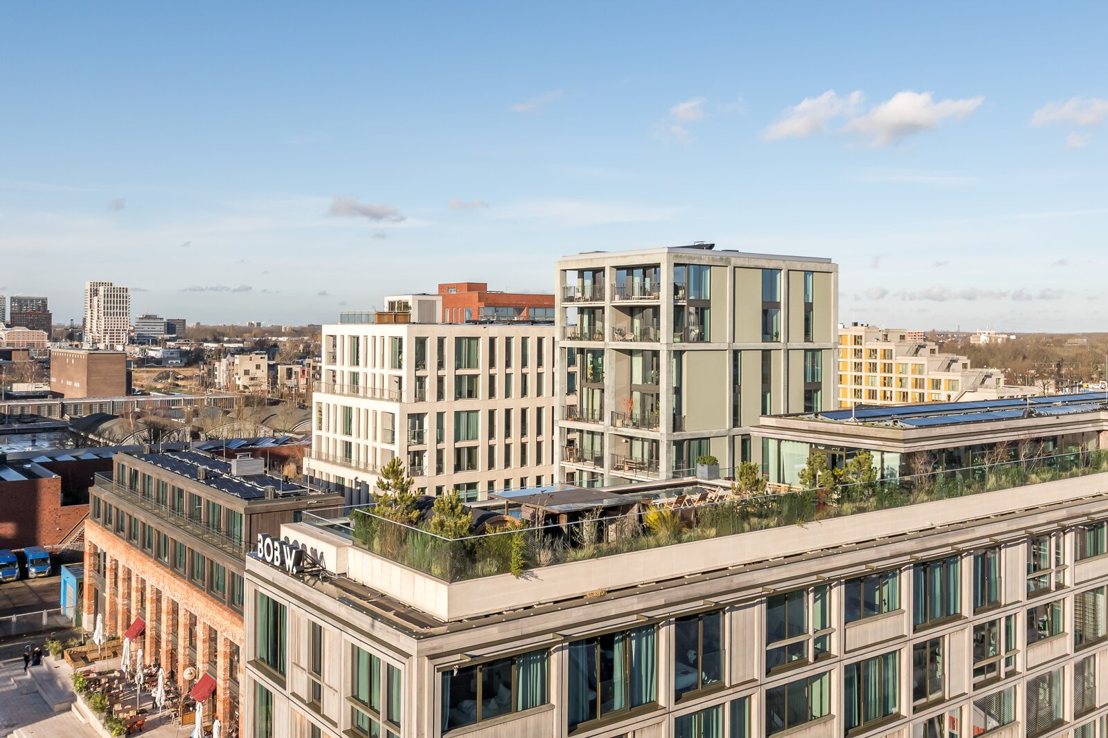 ‘Republica’ is ontworpen door Marc Koehler Architects en bekroond met de Architectenweb Award 2024. Het concept van een ‘urban village’ komt hier volledig tot uiting: een eigentijdse stadsoase waar wonen, werken en ontspannen samenkomen. In de plint van het complex bevinden zich diverse voorzieningen die het dagelijks leven comfortabel maken, waaronder een sfeervolle café-deli voor ontbijt, lunch of een informele avond.