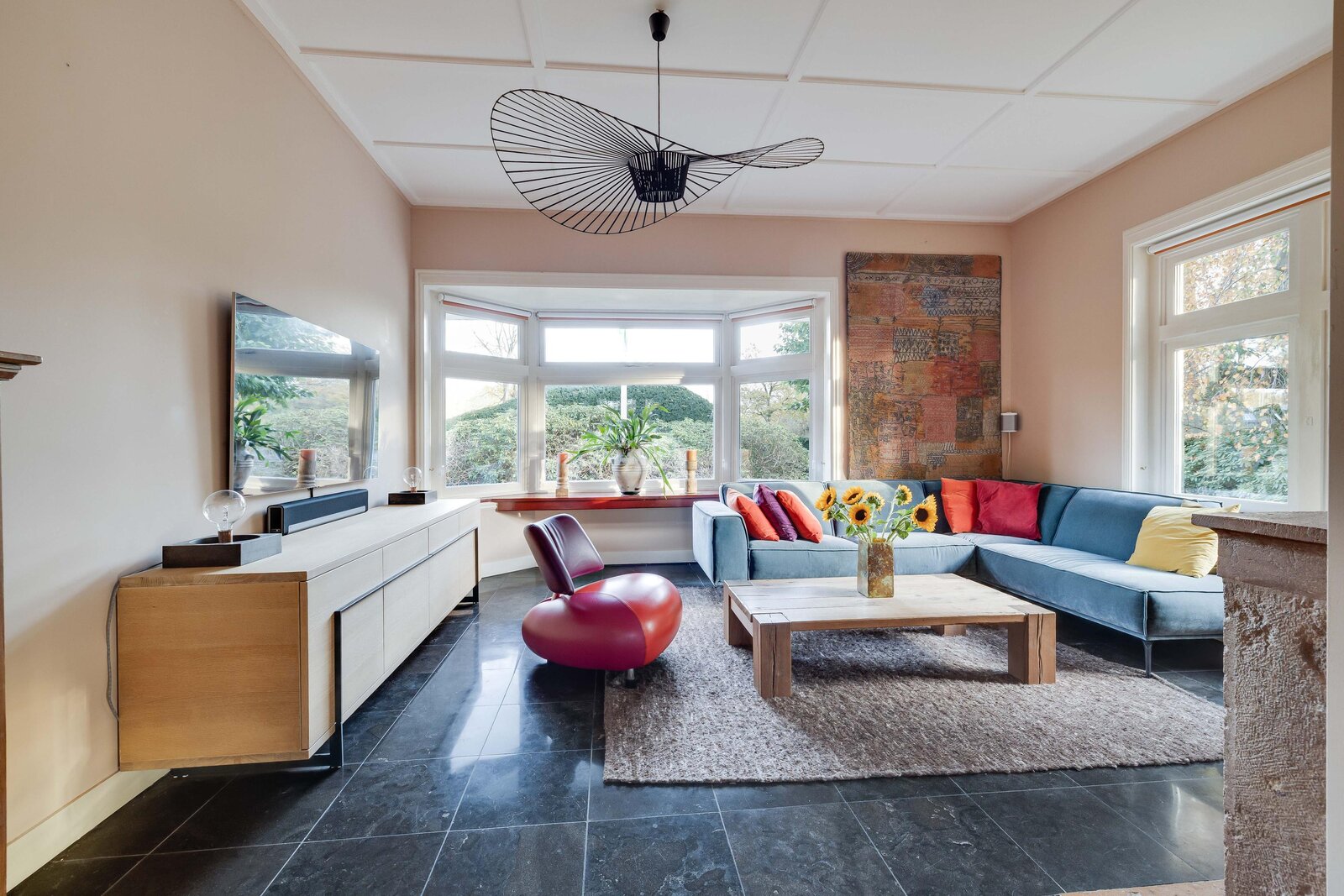 In 2001 is de woning door de vorige eigenaren gerenoveerd met respect voor de historie. Het pand is bijzonder: het is namelijk breder dan het diep is. Het heeft daardoor mooie lange zichtlijnen en de tuin wordt over de volledige breedte ervaren.