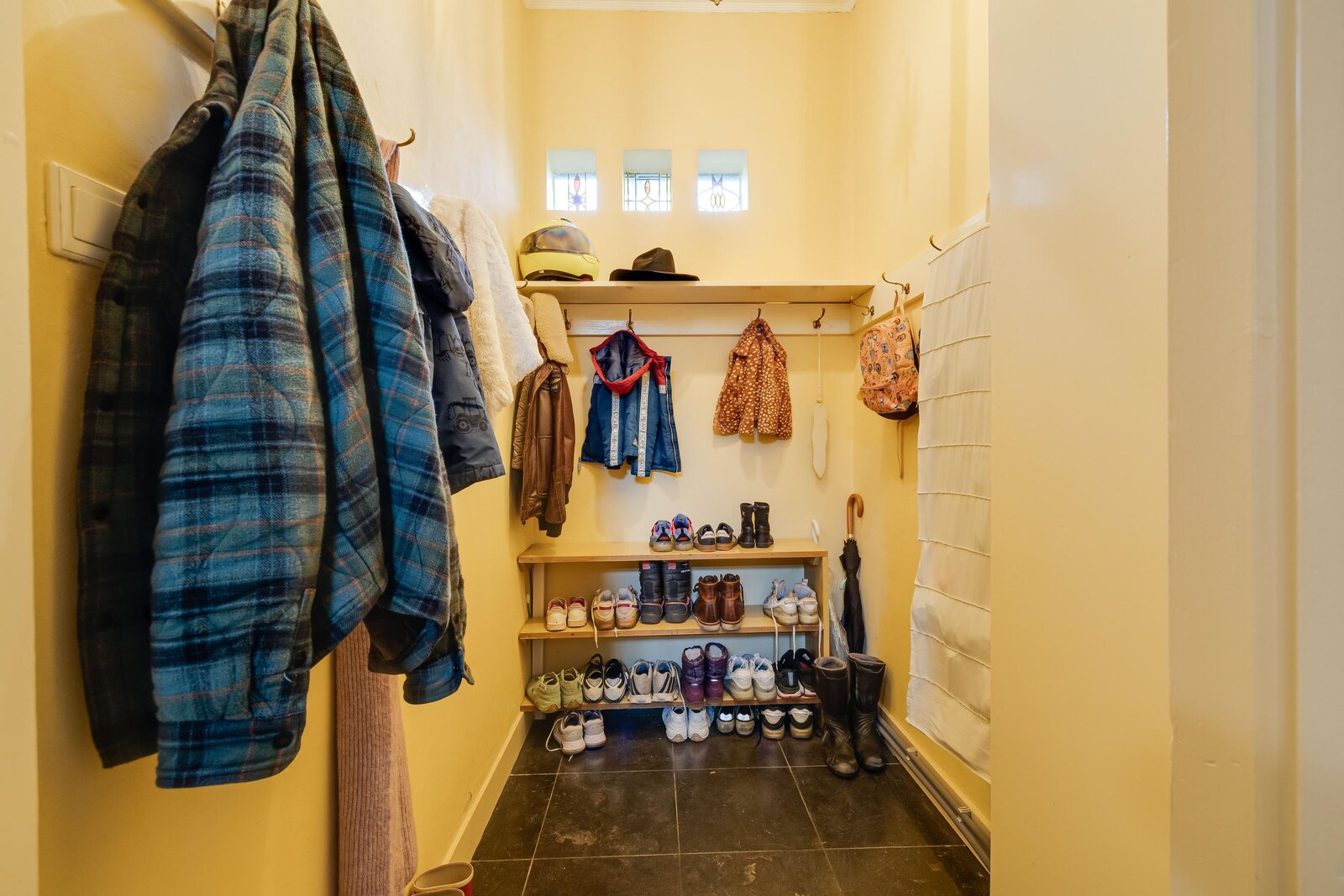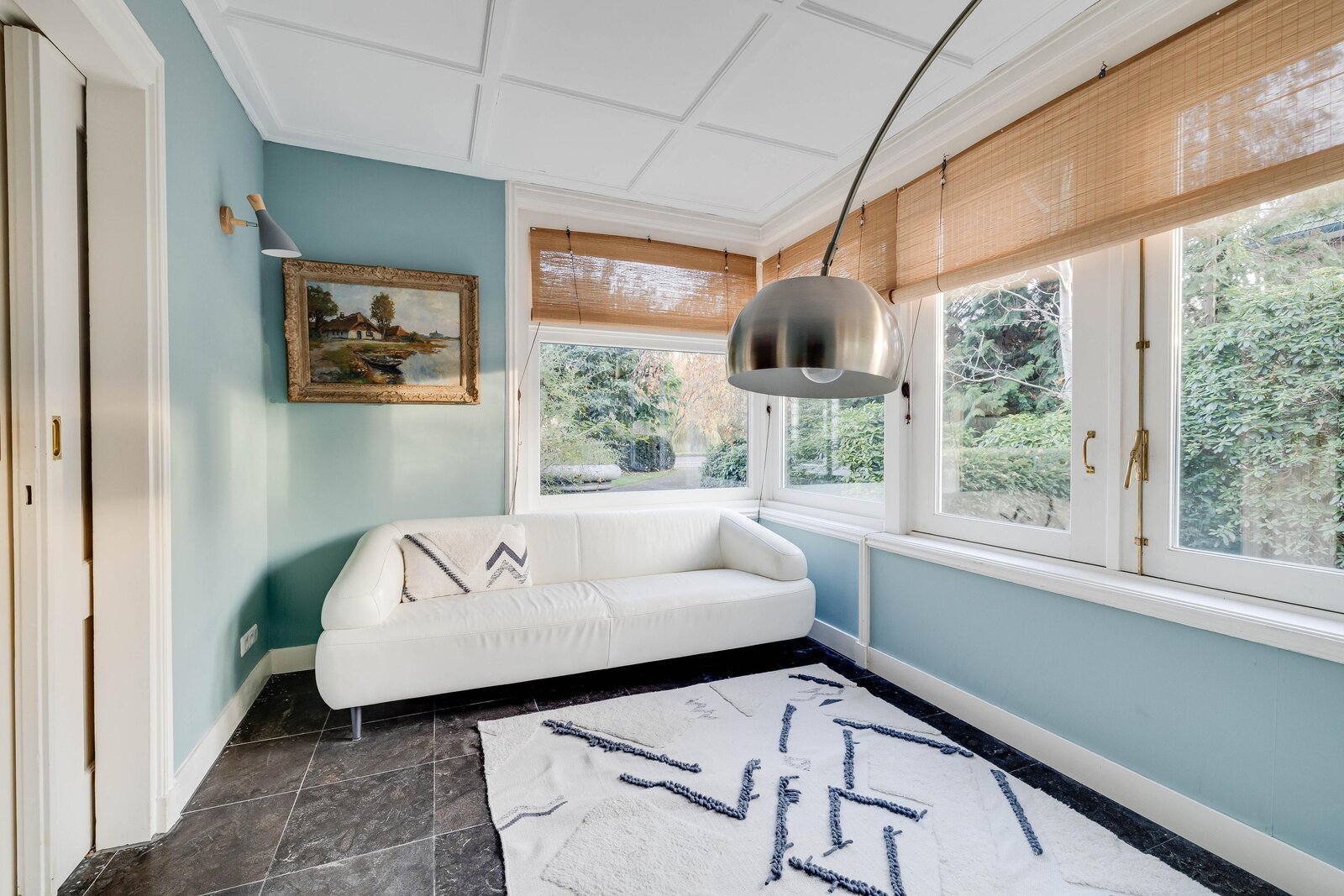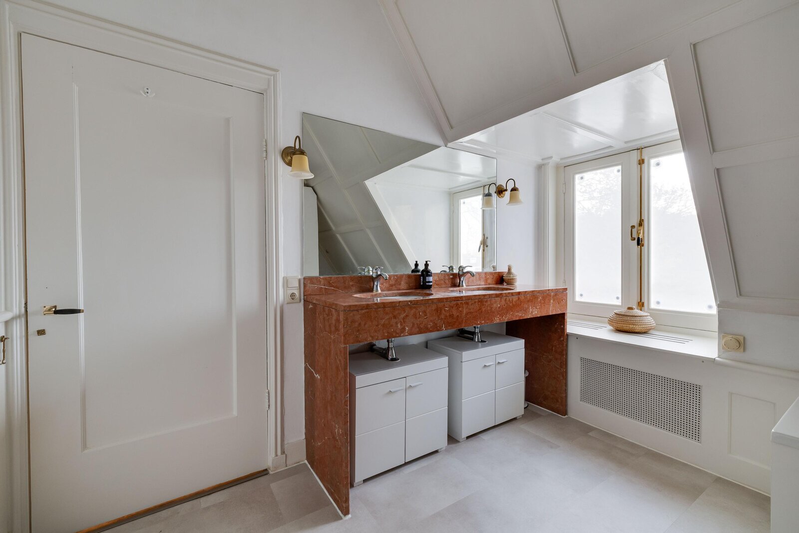 De bijzondere architectuur, met bijvoorbeeld de gebrandschilderde glas-in-loodramen op het trapbordes van atelier Bogtman uit Haarlem, bleef bewaard en werd verfraaid met een massief eiken trap met lambrisering naar de eerste verdieping. Vanaf deze verdieping gaat een vaste trap naar de royale geïsoleerde zolderverdieping. De zolder biedt dus mogelijkheden voor uitbreiding van het gebruiksoppervlak wonen. De woning is geen monument, dus veranderingen zijn mogelijk.