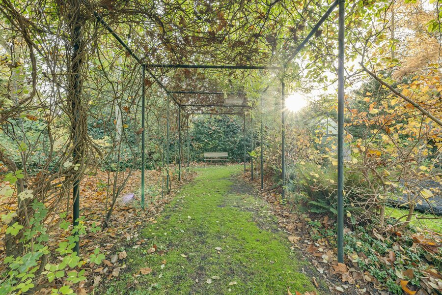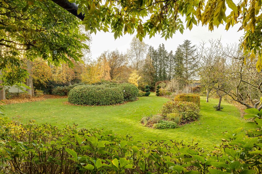 In de fraaie diepe landschapstuin kunnen tuinliefhebbers hun hart ophalen! De prachtige tuin met haar diversiteit aan bomen, borders en gazons is zichtbaar vanuit verscheidene vertrekken in het huis en vanaf het royale terras met veranda. Een plek om van lange zomeravonden te genieten.