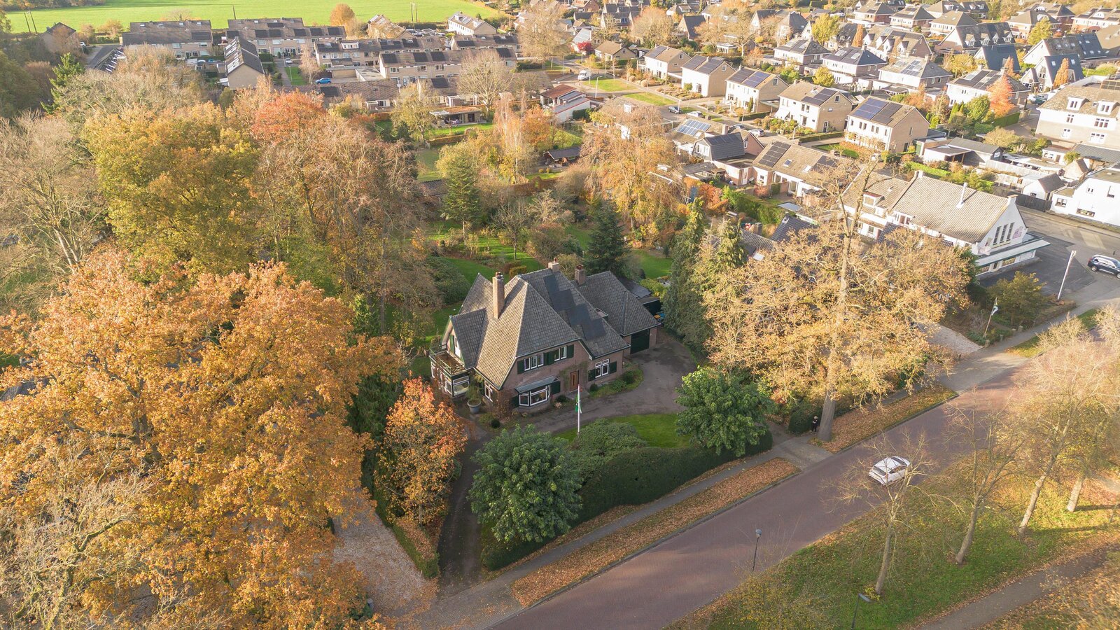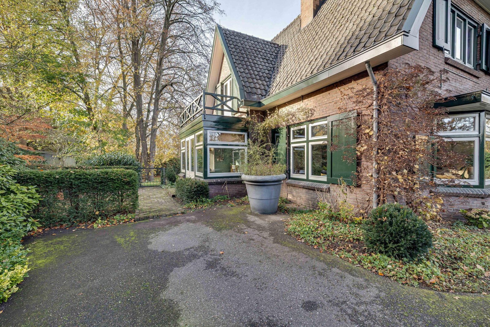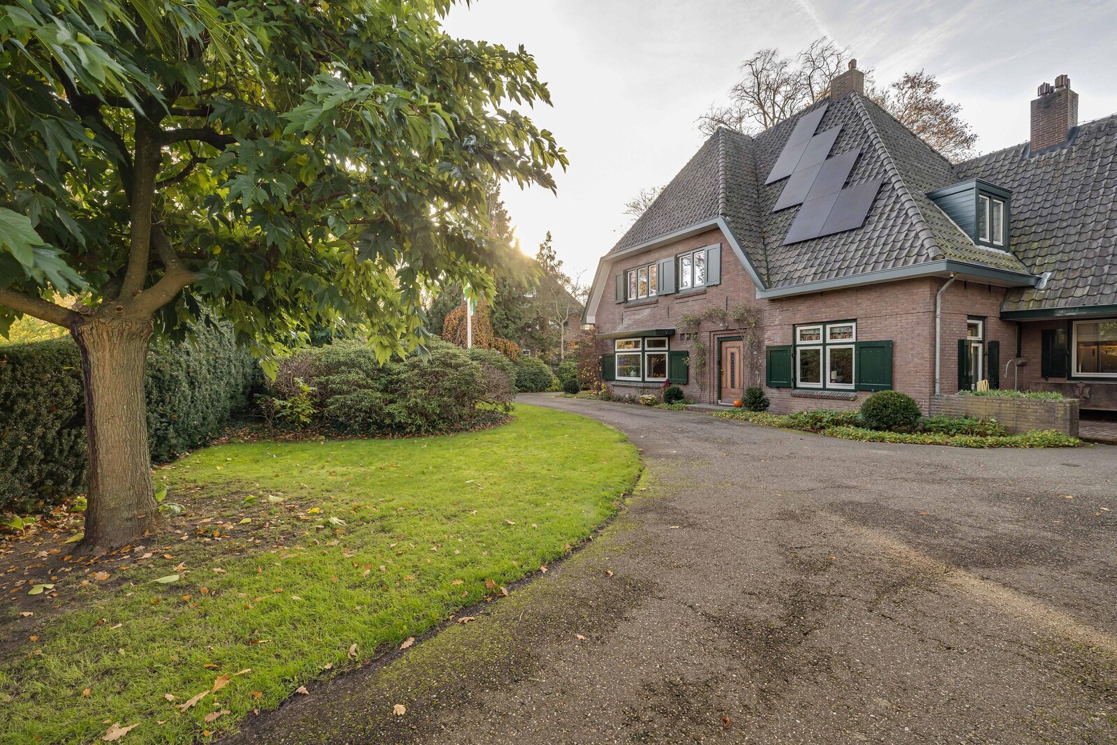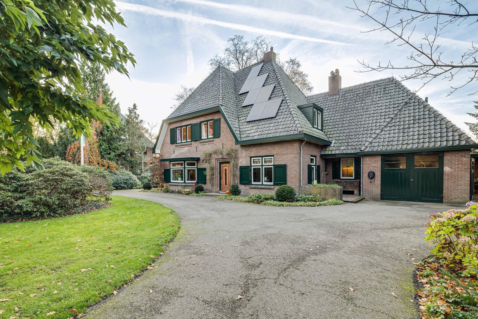 - Er is een dubbele royale oprit die rondloopt en voldoende parkeerplekken op eigen terrein biedt;