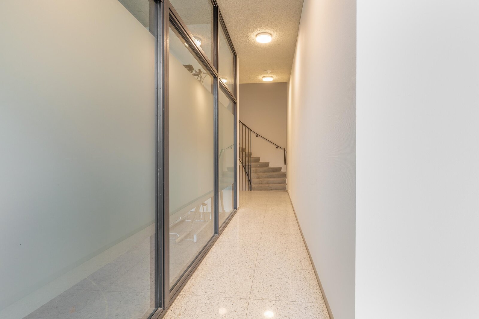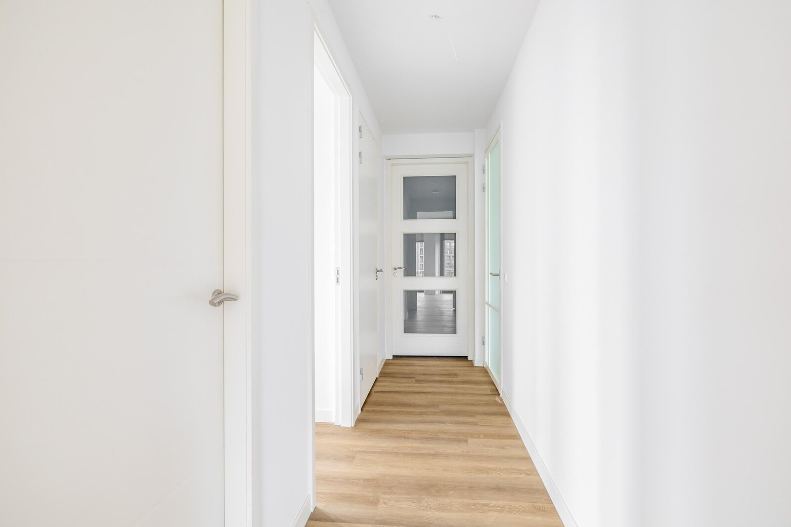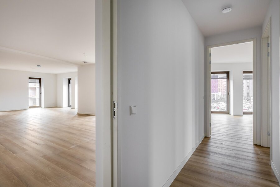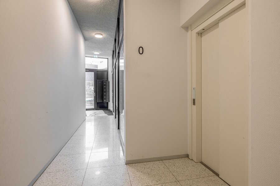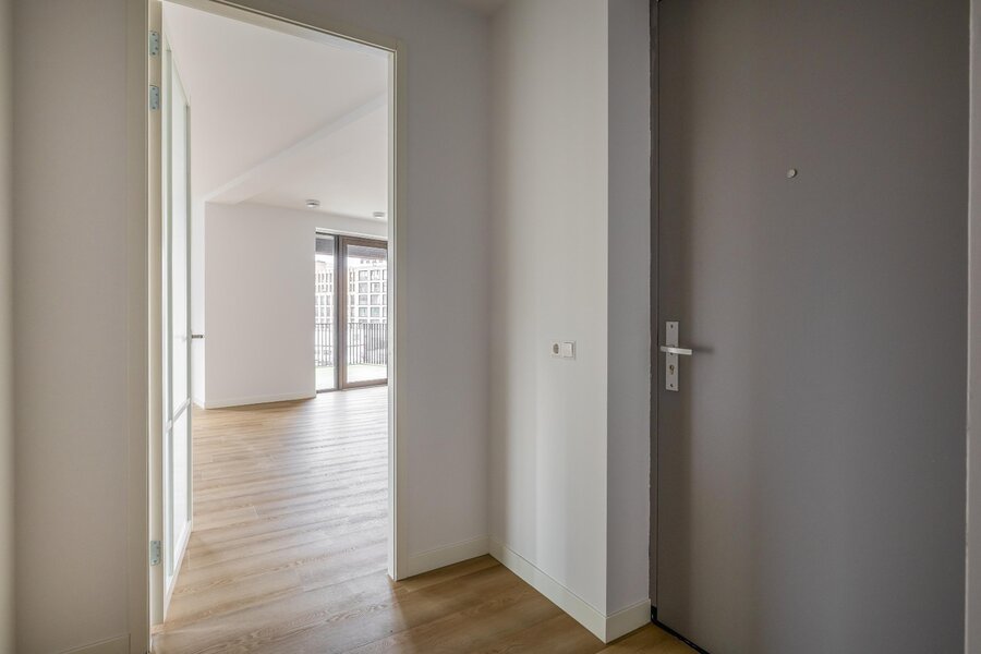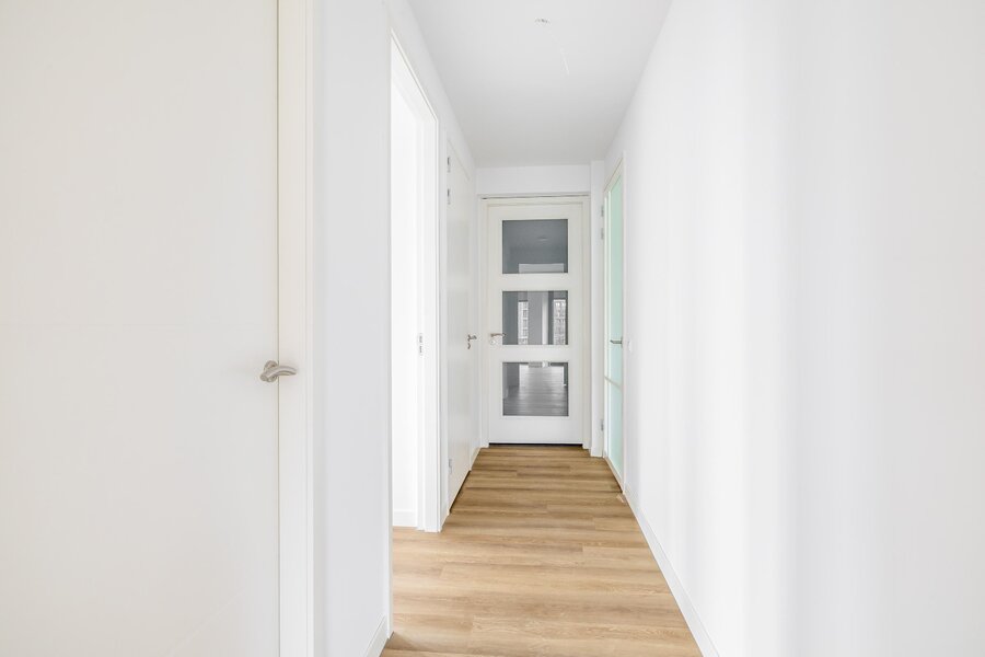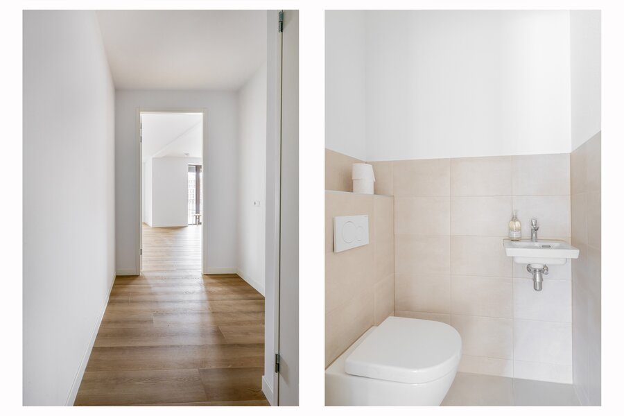 Via de gezamenlijke entree bereik je het Penthouse. De nette hal geeft toegang tot alle vertrekken en vormt het centrale punt van de woning.
