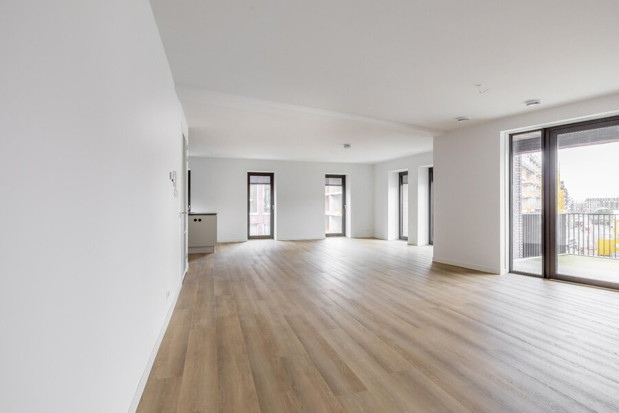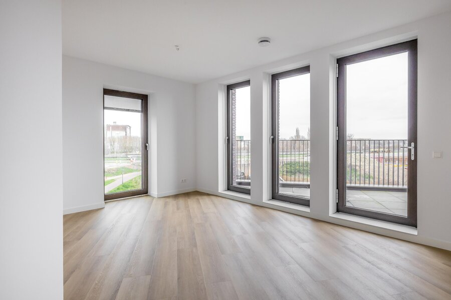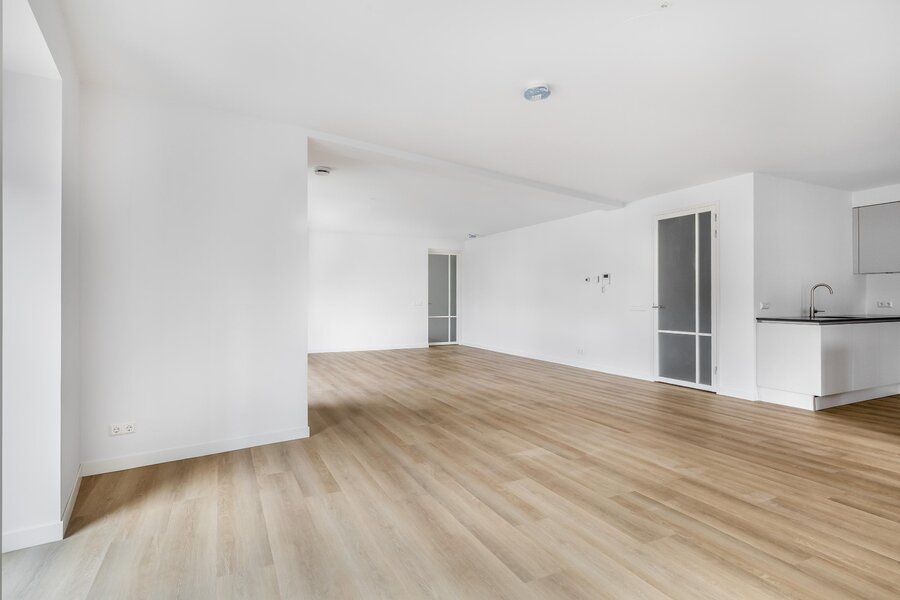 De royale woonkamer is licht en ruim opgezet en biedt dankzij de grote raampartijen en schuifpui een prachtig uitzicht over de omgeving. Vanuit de woonkamer heb je direct toegang tot het ruime balkon, waar je heerlijk buiten kunt zitten.