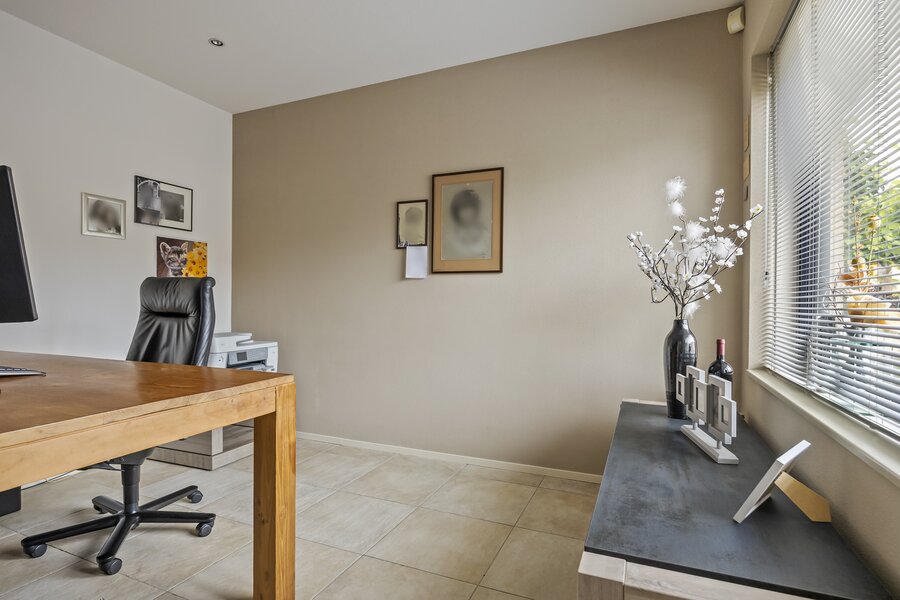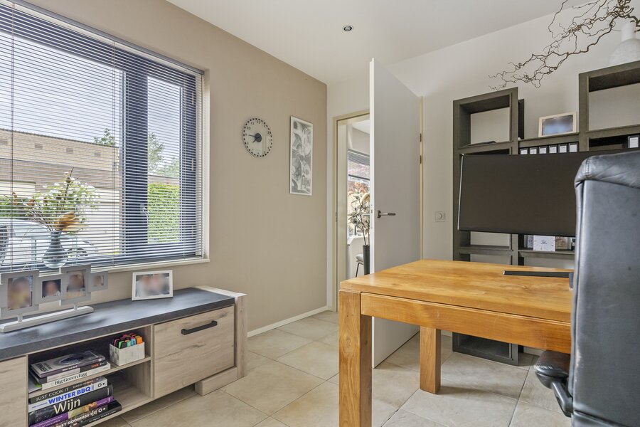 Aan de voorzijde van de woning bevindt zich een lichte en rustige werkruimte van circa 14 m². Deze kamer is direct bereikbaar vanuit de woonkamer en voorzien van een groot raam dat zorgt voor aangenaam daglicht en uitzicht op de voortuin. Ideaal als thuiskantoor, studieplek of leeshoek, maar ook uitstekend te gebruiken als speelkamer of extra slaapkamer. Een multifunctionele ruimte die zich moeiteloos aanpast aan jouw woonwensen.