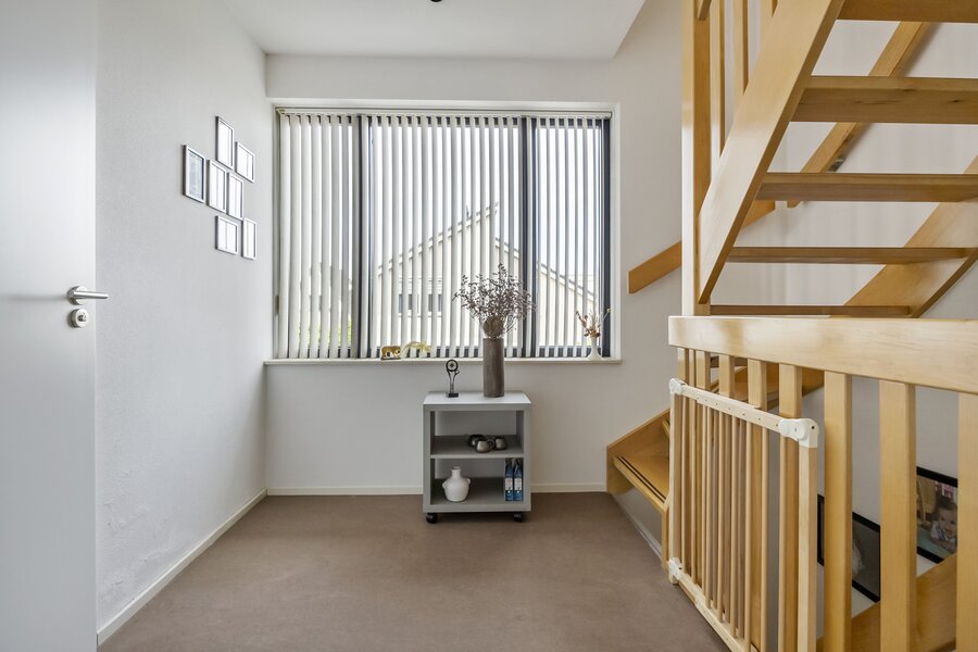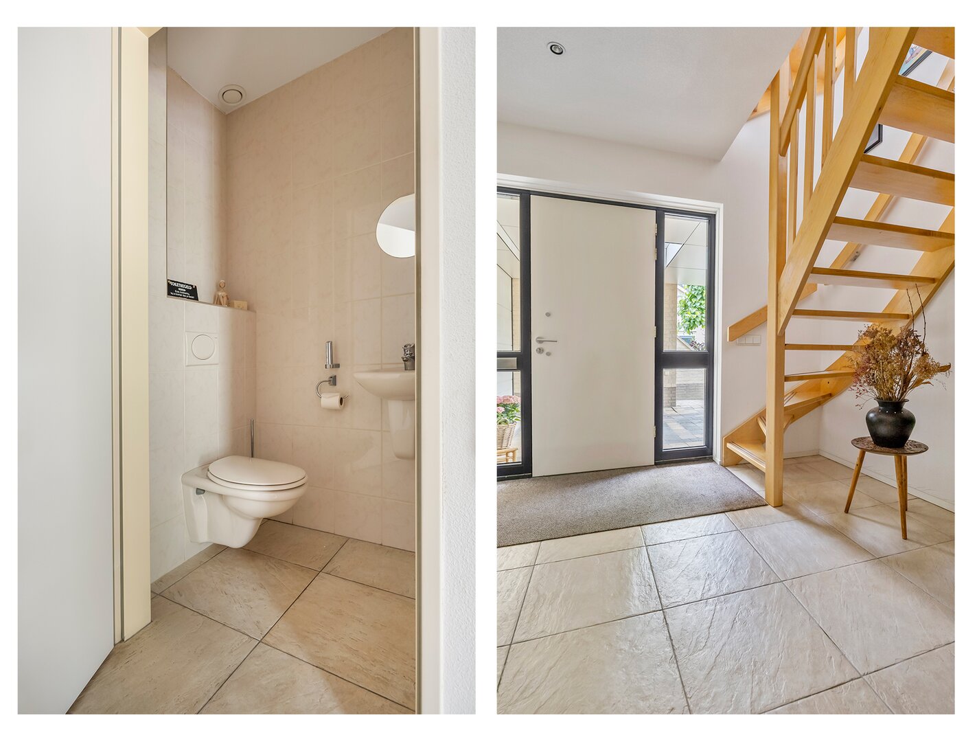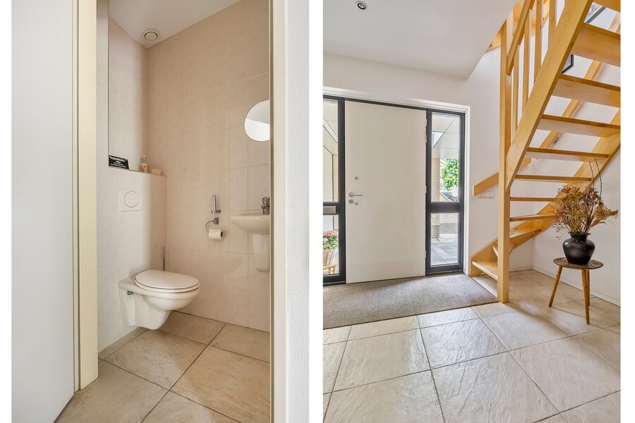 Via de zij-entree betreed je de woning en krijg je direct toegang tot de lichte woonkamer, het gastentoilet, de meterkast én de trap naar de eerste verdieping.