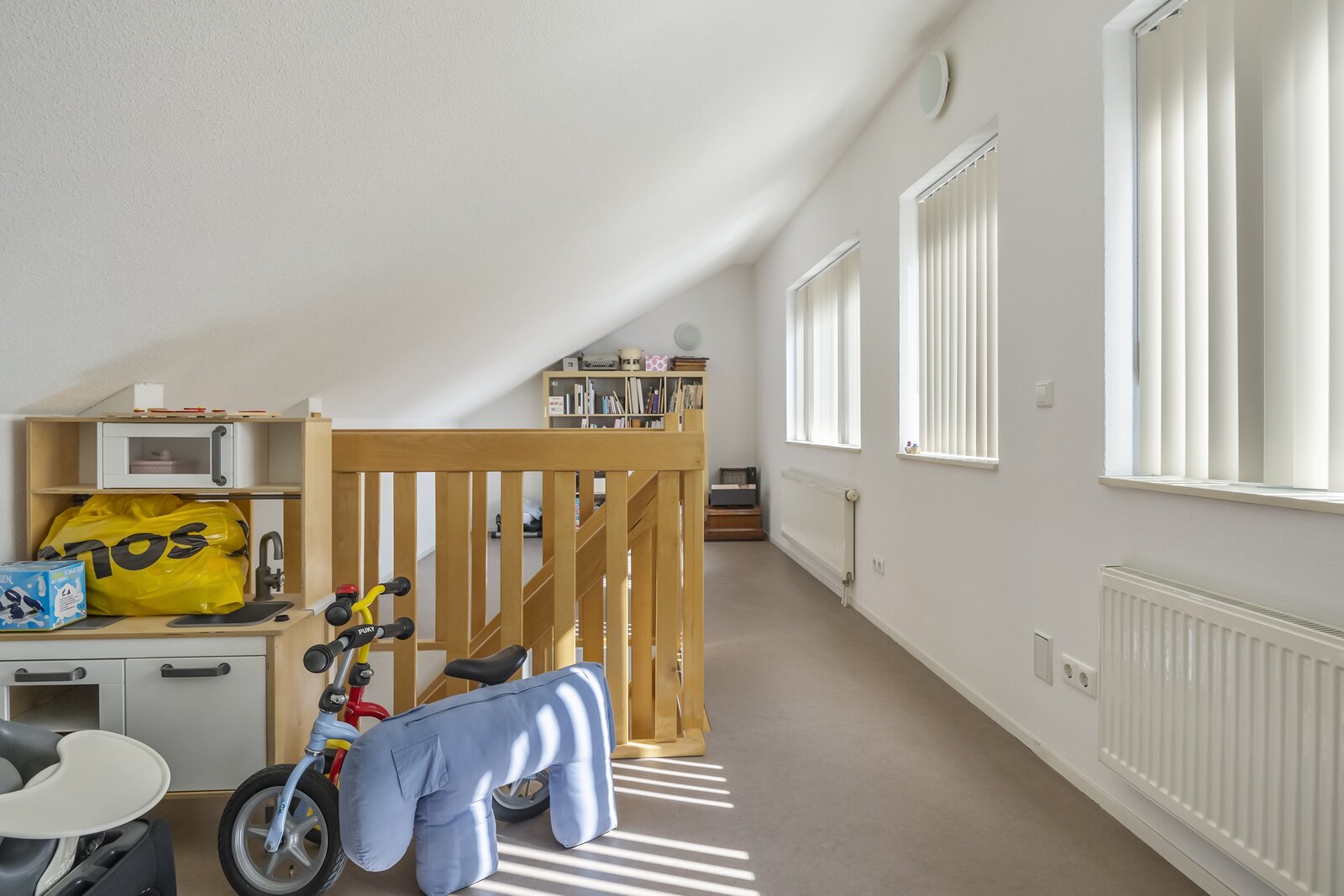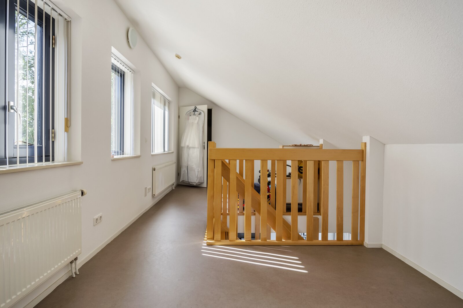 Via een vaste trap bereik je de zolderverdieping, gelegen onder het karakteristieke lessenaarsdak. Deze lichte en prettige ruimte is voorzien van drie ramen, wat zorgt voor een aangename daglichttoetreding. Perfect geschikt als studeer- of logeerkamer, hobbyruimte of extra slaapkamer.
