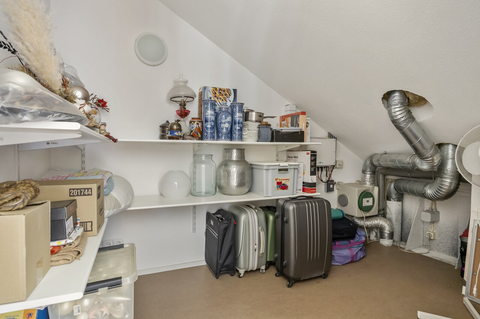 Aangrenzend bevindt zich een aparte berging, voorzien van handige planken en de opstelling voor de mechanische ventilatie.