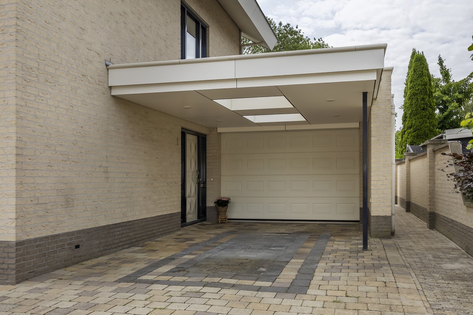 Voor de garage bevindt zich een ruime carport met twee dakkoepels, waardoor je ook bij regen droog uitstapt. Comfort en functionaliteit gaan hier hand in hand.